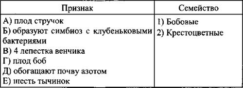 10. Установите соответствие между признаками растений семейства Бобовые и Крестоцветные.