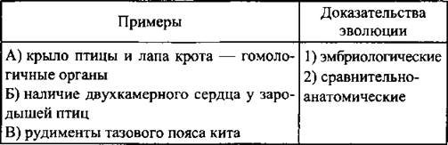 16. Установите соответствие между примерами и доказательствами эволюции, которым они соответствуют.