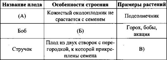 20. Проанализируйте таблицу «Типы плодов». Заполните пустые ячейки таблицы, используя термины, приведенные в списке. Для каждой ячейки, обозначенной буквами, выберите соответствующий термин из предложенного списка.