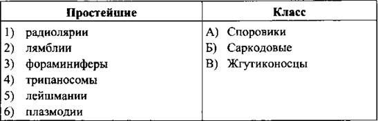 21. Установите соответствие между названием простейших и классом, к которому они принадлежат.
