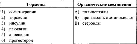 21. Установите соответствие между гормонами и органическими соединениями, к которым они относятся.