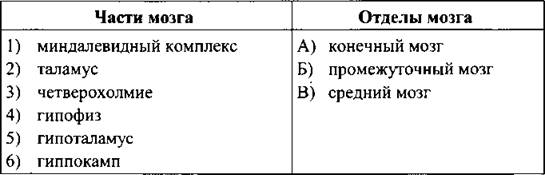 21. Установите соответствие между частями мозга и отделами, к которым они принадлежат.