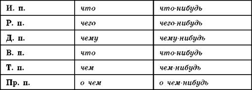Неопределенные местоимения указывают на неопределенные предметы, признаки, количество. Они образуются от вопросительных или относительных местоимений с помощью приставки НЕ- (некто, нечто, несколько) или элементов КОЕ-, -ТО, -ЛИБО, -НИБУДЬ (что-нибудь, кое-какой).