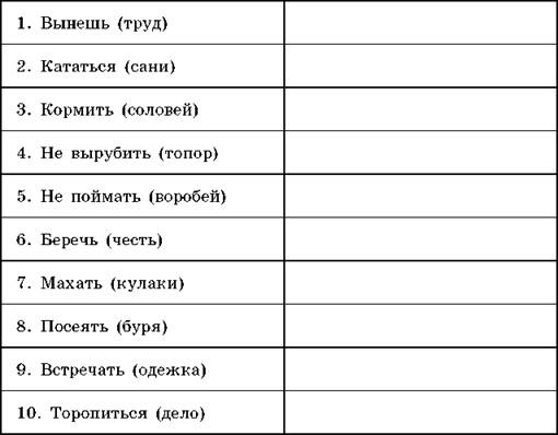 7. Вспомните пословицы и составьте обобщенно-личные предложения с данными глаголами, ставя глаголы в нужную форму. Предложения запишите в таблицу. Подчеркните сказуемые и укажите, чем они выражены.