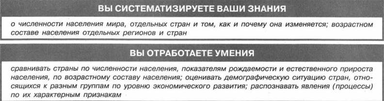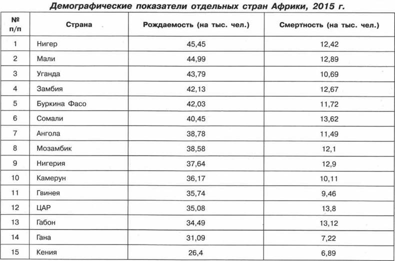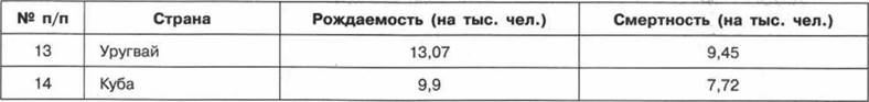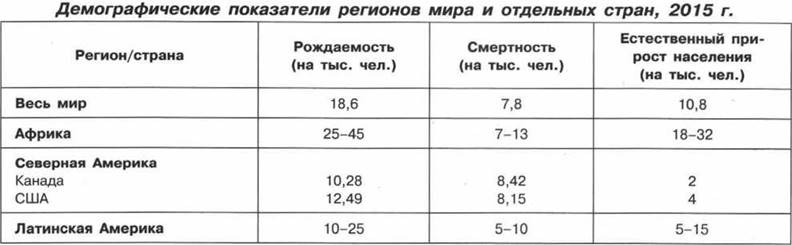 Для закрепления знаний о географических особенностях воспроизводства населения, усвоения понятия «естественный прирост населения» необходимо ознакомиться со статистическими данными таблицы 2, в которой отражены демографические показатели регионов мира и отдельных стран.