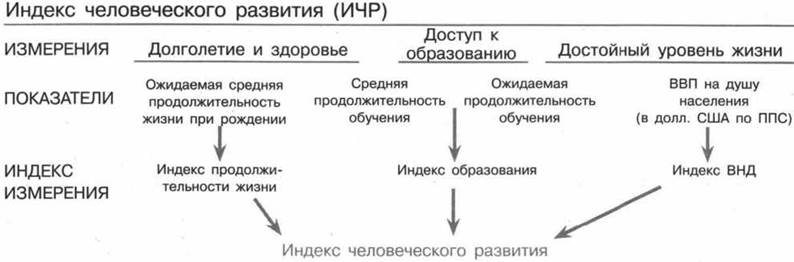 1) Из каких показателей состоит совокупный показатель индекса человеческого развития (ИЧР) в стране?