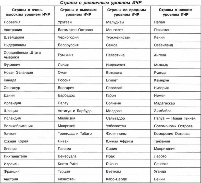 Следует знать, что ИЧР, в том числе и показатель ожидаемой средней продолжительности жизни населения, выше в той стране, которая наиболее экономически развита (табл. 10-14).