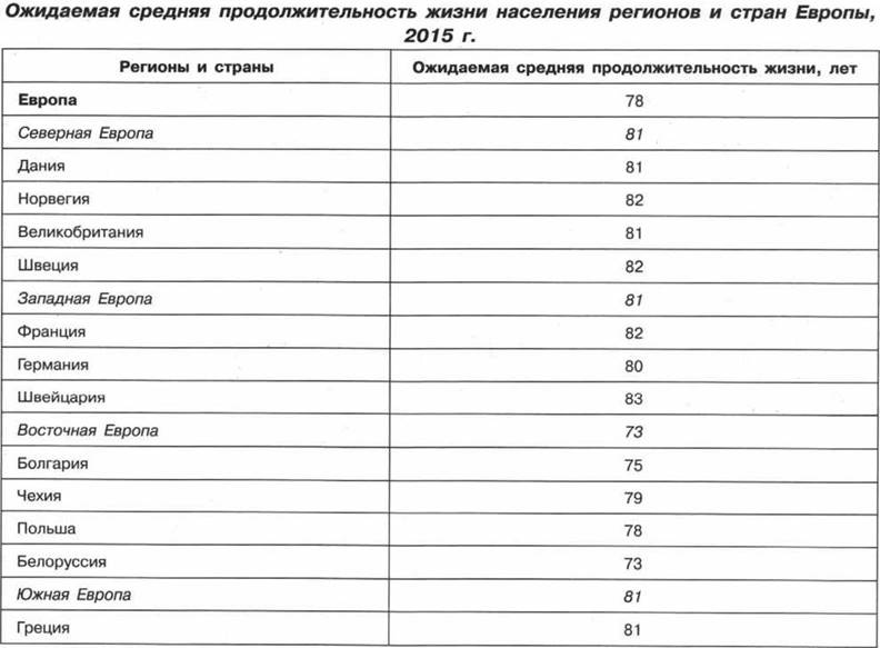 1. В какой из перечисленных стран ожидаемая средняя продолжительность жизни населения наибольшая?