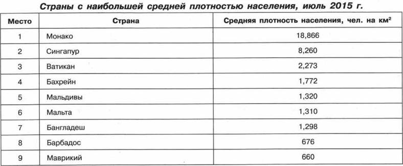 6. Какие три из перечисленных стран имеют наибольшую среднюю плотность населения? Запишите в таблицу цифры, под которыми указаны эти страны.