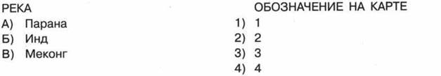 2. Установите соответствие между рекой и её обозначением на карте мира: к каждому элементу первого столбца подберите соответствующий элемент из второго столбца.