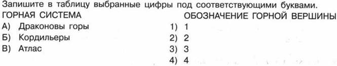 3. Установите соответствие между горной системой и обозначением на карте горной вершины, находящейся в пределах этой горной системы: к каждому элементу первого столбца подберите соответствующий элемент из второго столбца.