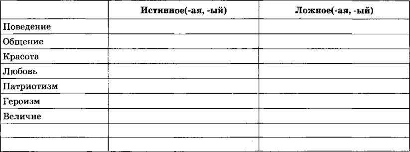 5. Главное идейное противостояние в романе — контраст истинного (естественного) и ложного (искусственного). Заполните таблицу примерами из текста романа. При желании дополните таблицу. Сделайте выводы.