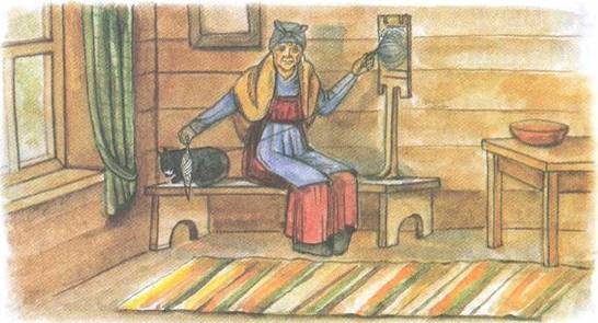 — Дед, трудно нам стало работать: у меня прялка сломалась, а у тебя, гляди-ка, ручка у ножа треснула, едва держится. Сходи-ка ты в лес, вы- руби деревце, сделаем новую прялку да ручку к ножу.