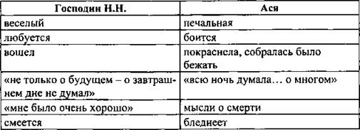 Н.Н. боится Асиной «странности», боится неожиданностей и беспокойств, которое ему сулит женитьба на ней. Он поступает «благоразумно», «по правилам», «как честный человек», а любовь - нарушение всех правил. Героям не судьба быть вместе. Автор наказывает героя за то, что тот не узнал любовь, что сомневался в ней. Осознание чувства любви к нему пришло слишком поздно. Нельзя откладывать любовь и счастье «на завтра».