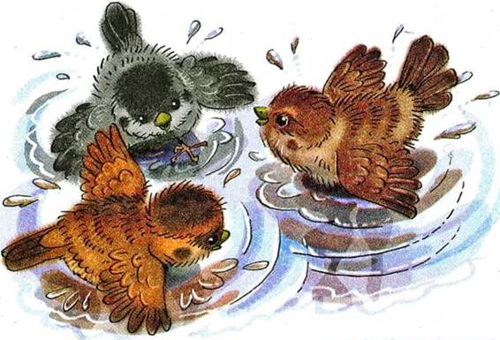 Понял Ванятка: воробьи так за зиму измазались, что и на себя стали не похожи. Это они сейчас в бане мылись, зимнюю грязь с себя смывали. С песочком тёрли!