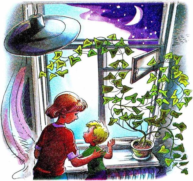 И мама погасила свет, и в комнате стало темно, и мы стали вдвоём смотреть на бледно- зелёную звёздочку.