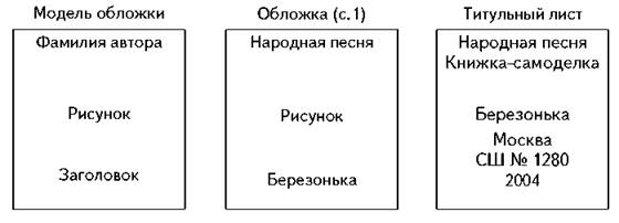 Можно предложить детям проиллюстрировать какое-либо произведение вместе с родителями. Такая работа требует подготовки со стороны учителя. Например, на уроке работали с русской народной песней «Березонька». В конце урока вы спрашиваете детей: «Кто хотел бы нарисовать иллюстрацию к песне?» Тем, кто захочет сделать иллюстрацию, учитель раздает листы, на которых в нижней части написан букварным шрифтом текст песни, а в верхней части нужно сделать иллюстрацию. Иллюстрации дети выполняют вместе с родителями в течение нескольких дней. Когда соберется много листов, составьте из них книжку-самоделку. Такое задание предложите три-четыре раза в год. Обязательно оформите правильно первую страницу обложки и титульный лист.