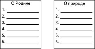 Затем на страничках нужно «напечатать» темы чтения разными цветами (цвета «заместителей» тем): о Родине (кр.), о детях (жел.), о природе (зел.), о животных (кор.), о волшебстве и приключениях (син. или фиол.). Вот пример страничек: