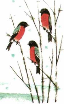 на ветках снегири.