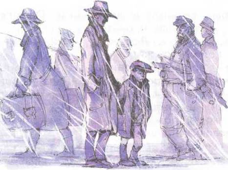 Он не стал меня уговаривать. Он прибавил шагу и крепко сжал мою руку. Мне стало даже больно. Он шёл очень быстро, и я еле-еле поспевал за ним. Отчего он шёл так быстро? Почему он не разговаривал со мной? Мне захотелось на него взглянуть.