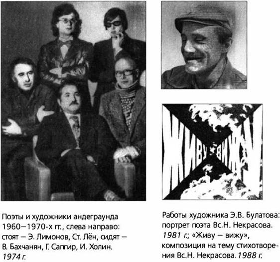 В этот же период резко возрастает роль так называемого «самиздата» и «тамиздата», объединений авангардной поэзии вроде «лианозовской школы» и песенных «рок-кабаре», своего рода «солнечного подполья» для авторской, «подъездной» или «путевой» песни.