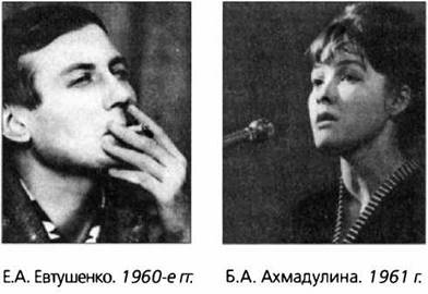 Лирика молодого Е. Евтушенко, окончившего в 1954 году Литературный институт, — и прежде всего такие его книги, как «Шоссе энтузиастов» (1956), «Яблоко» (1960), «Нежность» (1962), «Взмах руки» (1962), «Катер связи» (1967), «Поэт в России больше, чем поэт» (1973), «Точка опоры» (1981), — не только превосходила поэзию многих современников своей известностью в России и за ее пределами. В ее «громкости», или «эстрадности», заключено было множество формул перехода к либеральной весне. В таких его стихотворениях, как «Карьера» («Я делаю себе карьеру / Тем, что не делаю ее ... »), «Граждане, послушайте меня», «Наследники Сталина» («Безмолвствовал мрамор... »), «Давайте, мальчики!», «Хотят ли русские войны», «Нигилист», «Гражданственность — талант нелегкий», «Памяти Ахматовой» и др., звучали типичные «антикультовские» мотивы.