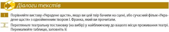 Найкращі українські актори завжди щиро відтворювали на сцені непрості стосунки в «любовному трикутнику», індивідуальну правду кожного персонажа, яка не збігалася з правдою інших. У Київському академічному драматичному театрі ім. Івана Франка Сергій Данченко поставив «Украдене щастя» у 1979 р. Найбільш драматичну роль - Миколи Задорожного - тоді зіграв Богдан Ступка.