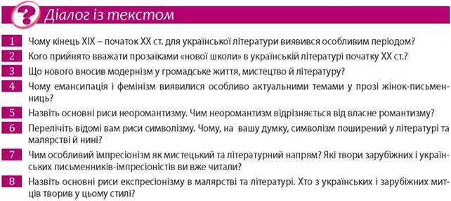 Період останніх десятиліть ХІХ ст. і початку ХХ ст. для української літератури продемонстрував зміни в естетичній свідомості митців, що зумовили появу модернізму як нового літературно-мистецького напряму.
