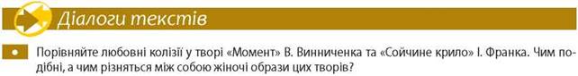 Герої новели «Момент» інтуїтивно вловлюють суть конфлікту між Божими законами, закладеними в природі, і потворними людськими стосунками в суспільстві. Авторська позиція накладається на умовиводи героя: «Люблю цих кузьок, пташок, цих маленьких, несвідомих протестантів проти лицемір'я старшого брата свого - людини». І в цих словах, знову ж таки, звучить осуд ненависті, жорстокості, кровопролиттю між людьми. Невипадково сучасна дослідниця літератури Лариса Мороз називає творчий доробок Володимира Винниченка зразком «літератури-як-філософії».
