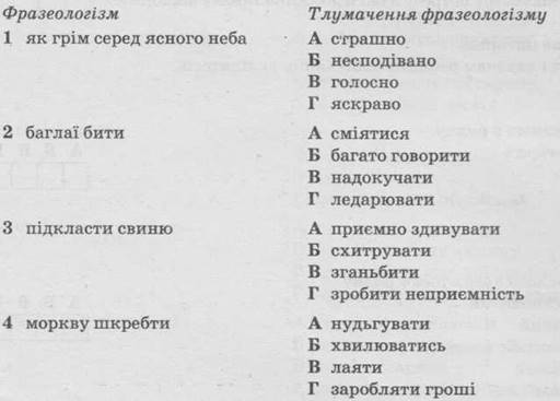 12. Установіть відповідність між фразеологізмом і його правильним тлумаченням.