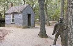Хатинка Г. Торо в лісі на березі Волденського озера та його скульптура