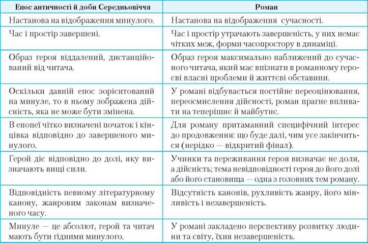 Учений визначив відмінності героїчного епосу (епопеї) і роману.