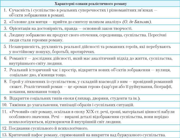 Формування та ознаки реалістичного роману. 1820-1830-і роки в Європі — це перехідний період від романтизму до реалізму. У цей час з’являються й реалістичні романи, хоча в них досить потужними були елементи романтизму. Перший роман, на титулі якого О. де Бальзак поставив своє ім’я, — «Останній шуан, або Бретань в 1800 році» (1829). О. Пушкін працював над «Євгенієм Онєгіним» з 1823 р. до початку 1830-х років. Отже, у той час тривало активне формування нового роману.
