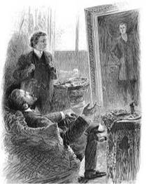 Посеред кімнати стояв на мольберті зроблений у повний зріст портрет надзвичайно вродливого юнака, а перед портретом сидів сам художник Безіл Голворд (...).