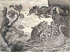 Одіссей між Сциллою та Харибдою. Середньовічна гравюра