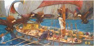 Відомий англійський художник наприкінці ХШ — на початку ХХ ст. Дж. В. Вотергаус неодноразово звертався до сюжетів гомерівської «Одіссеї». Однією з найвідоміших картин англійського художника є «Одіссей і сирени». На картині зображено корабель Одіссея, який пропливає острів, де живуть сирени. В уяві митця вони напівжінки та напівптахи. Робота художника надзвичайно яскрава, у ній виписані всі деталі.