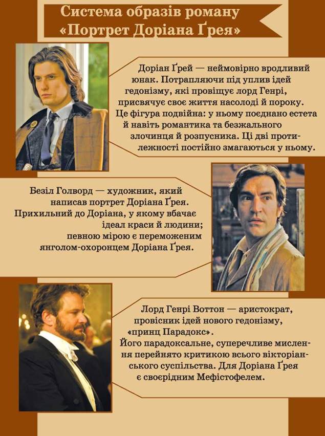 Ознайомтеся із системою образів роману Оскара Уайльда «Портрет Доріана Ґрея» (с. 94-95). Складіть тест за наведеною інформацією для перевірки її розуміння рештою учнів.