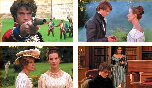 Розгляньте подані ілюстрації (кадри із кінострічок) та розставте їх у послідовності подій роману Стендаля «Червоне і чорне». Розподіліть ці події за частинами твору.