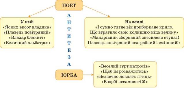 7. Який художній засіб використовує Бодлер, щоб підкреслити велич духовного злету й ницість земного бруду? Доведіть прикладами з тексту.