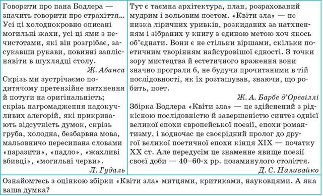 1. Прокоментуйте вислови відомих людей про Ш. Бодлера. Як ви розумієте їх?