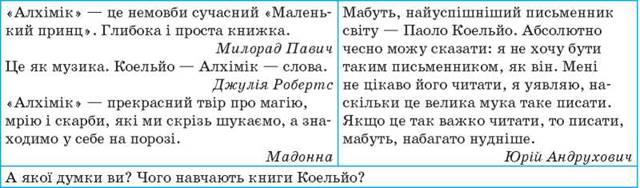 2. Літературну рекламу-анонс роману Паоло Коельйо «Алхімік».