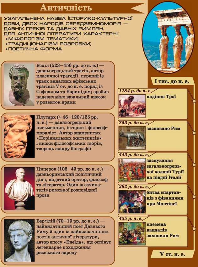 І література, і мистецтво, і філософія античного світу стали вихідною точкою в розвитку всієї подальшої культури, адже вони вперше по-справжньому відкрили й оспівали людину, зробили ставлення до неї мірилом усіх речей, пізнали її як прекрасний і довершений феномен природи. Тому античну літературу небезпідставно називають колискою літератури європейської.